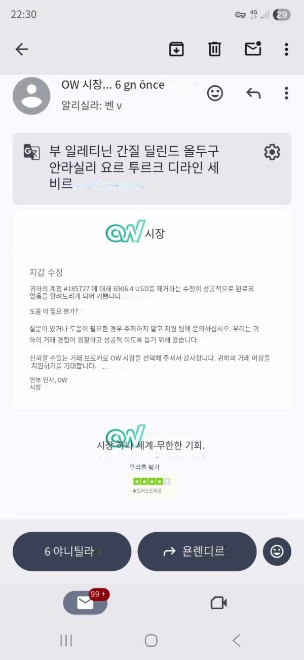 브로커와 6개월 이상 함께 했어요. 지금까지는 아무 문제가 없었는데, 갑자기 제 자금을 인출할 수 없게 되었어요. 많은 사람들이 이 사기에 속았다는 걸 알게 되었어요. 제 자금을 되찾을 수 있도록 도와주길 바랍니다. 가장 최악인 건, 제가 모든 것을 지원팀에 보내면 그들은 티켓 상태를 '해결됨'으로 표시하지만 실제로는 아무것도 해결하지 않았다는 거예요. 그들은 API 문서의 조항을 들먹이며 답변하고, 저는 항상 적은 자본으로 일했어요. 순수한 사기예요 .