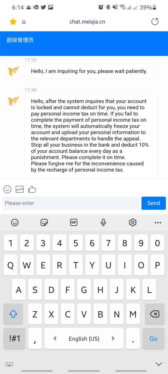 be careful with talking to strangers, instead of earning money you will lose 6k, the usual propaganda they will let you earn the let you pay "tax" for what state we don't know, taxes should be deducted not recharged, ps beware of thw pretty face you talk on whatsapp, scammers and they all work together