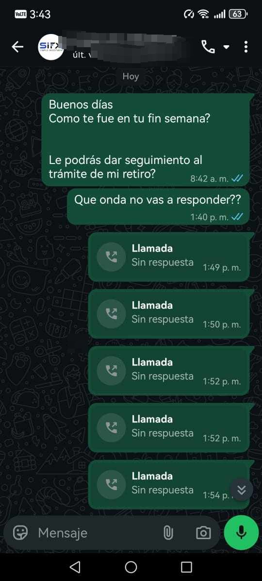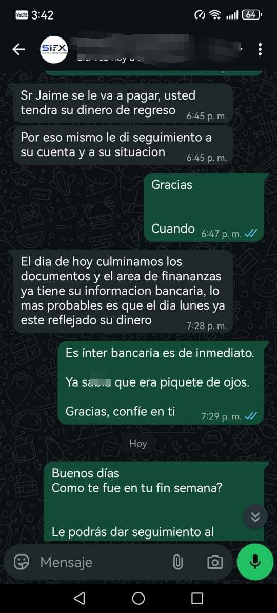 Si pueden ver las FOTOS para que se den una idea de la Cia. SIFX SIMPLE INVESTMENT... TRES MESES CON 12 CANCELACIONES DE MI RETIRO. QUE PORQUE: TENGO UN CREDITO QUE NO USE NO HACI MAS INVERSIONES (ASI COBRAN) $26.40 Y ME COBRARON $94.80 05/11/25 $40.00 COBRAN $26.20 OTRAS MAS. Cómo se anima a seguir uno invirtiendo.?