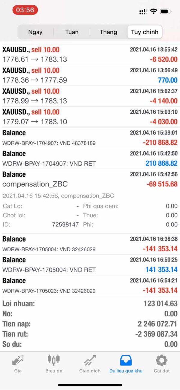 Tôi có tài khoản giao dịch âm trước đây nhiều lần cộng lại là 69k . Sau nhiều lần nạp tôi giao dịch có lời . Và khi rút ra . sàn trừ đi số tiền trước đây reset tài khoãng về 0 cho tôi . [d83d][de02][d83d][de02][d83d][de02] .