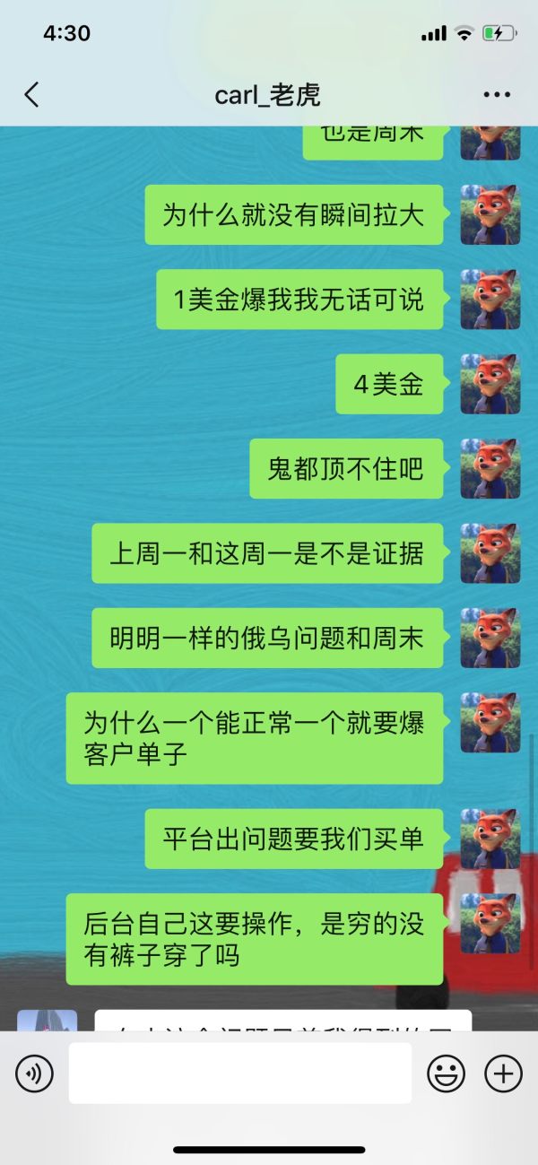 恶意拉大点差爆客户仓,点差达到400点,四美金之多!客服不理睬,平台要客户自己承担所有损失