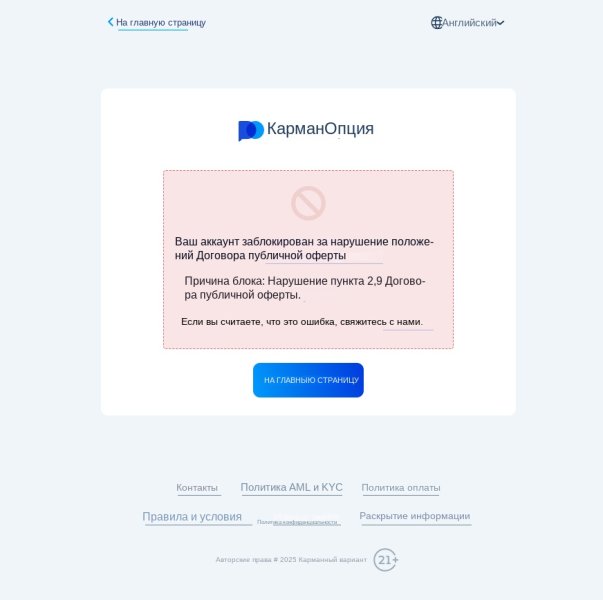 14 сентября 2025 года они заблокировали мою учётную запись, заявив, что я нарушил статью 2.9 их соглашения о публичном размещении акций, в которой говорится, что «компания запрещает клиентам участвовать в мошеннических действиях, которые компания может расценить как часть поведения клиентов. Эти мошеннические действия направлены на использование операций, не контролируемых компанией, лазеек в официальном сайте компании, спекуляций, основанных на бонусах, и злоупотреблений в торговле для получения прибыли, включая, помимо прочего, проведение сделок хеджирования через разные счета и спекуляцию активами, испытывающими трудности с ликвидностью. В таких случаях компания оставляет за собой право расторгнуть настоящее соглашение или обнулить результаты торговых операций. Однако я считаю, что не нарушил ни одно из условий.В нём описано, и каждый заказ имеет 5-минутный цикл. До бана был запрос на вывод почти 3000 долларов, который не был выполнен более 3 дней. Мой идентификатор: ****