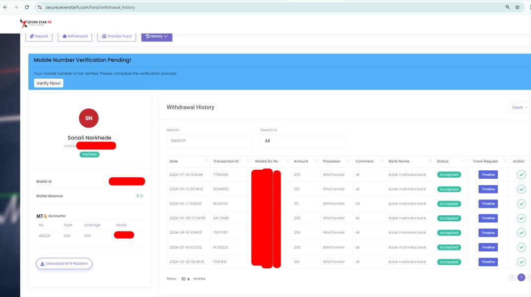 I am trading with seven star fx since Jan2024 I am receiving my withdrawals on time same day , Trade execution also faster then other broker I highly recommended this broker