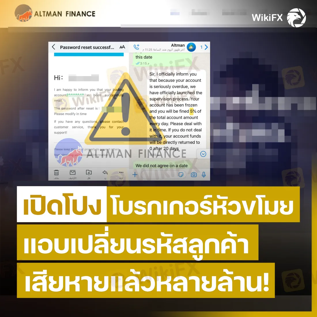 โบรกเกอร์รายนี้ชื่อว่า “โบรกเกอร์ ALTMAN FINANCE” ล่าสุดเทรดเดอร์ทั่วโลกออกมาแฉกันไม่หยุดถึงพฤติกรรมหัวขโมย รายนึงเล่าว่าโดนแอบเปลี่ยนรหัสบัญชีของตัวเองด้วย “พวกเขาล้างบัญชีของฉัน พวกเขาเปลี่ยนรหัสผ่านของฉันและพวกเขาขโมยเงินทั้งหมดไป ขโมย 100% พวกคุณทุกคนอยู่ห่างจากโบรกเกอร์นี้ พวกเขาควบคุมทุกอย่างที่คุณไม่สามารถทำอะไรกับตัวเองได้”