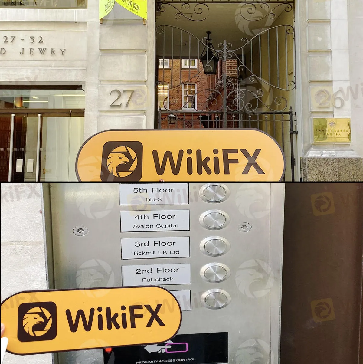 WikiFX เดินทางไปตามที่อยู่ข้างต้น ซึ่งอยู่ใกล้กับสำนักงานใหญ่ของธนาคารแห่งประเทศอังกฤษ บริเวณนี้เป็นที่ตั้งของธนาคารเอกชนจำนวนมาก และอาคารที่โบรกเกอร์ Tickmill ตั้งอยู่มี 5 ชั้น ซึ่งทีมงานพบป้ายของโบรกเกอร์ Tickmill ในปุ่มกดลิฟต์ด้วย