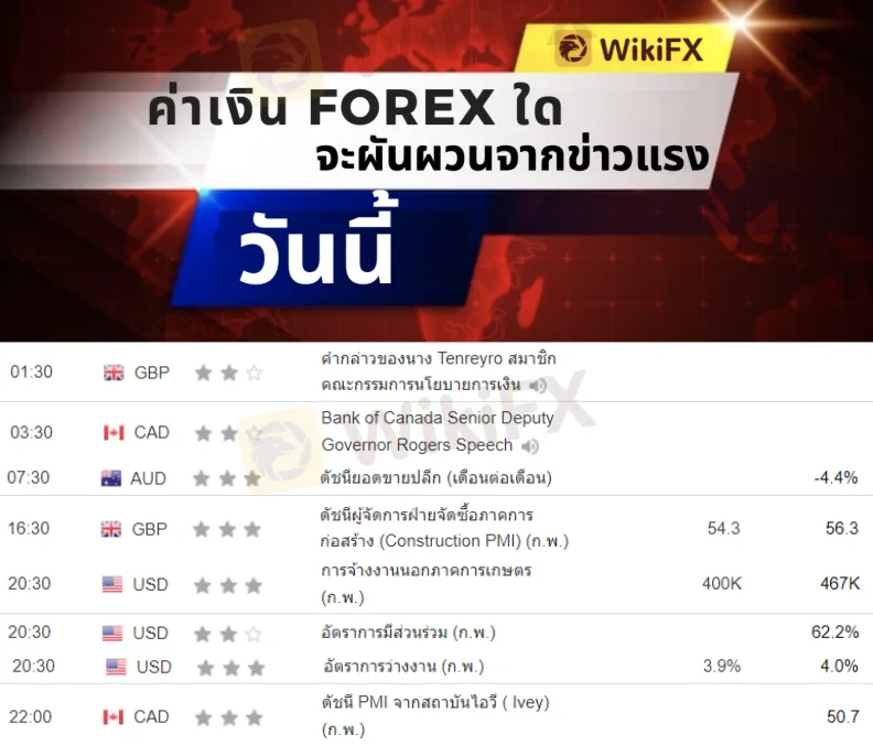 ตารางข่าว Forex ประจำวัน (4 มีนาคม 2565)