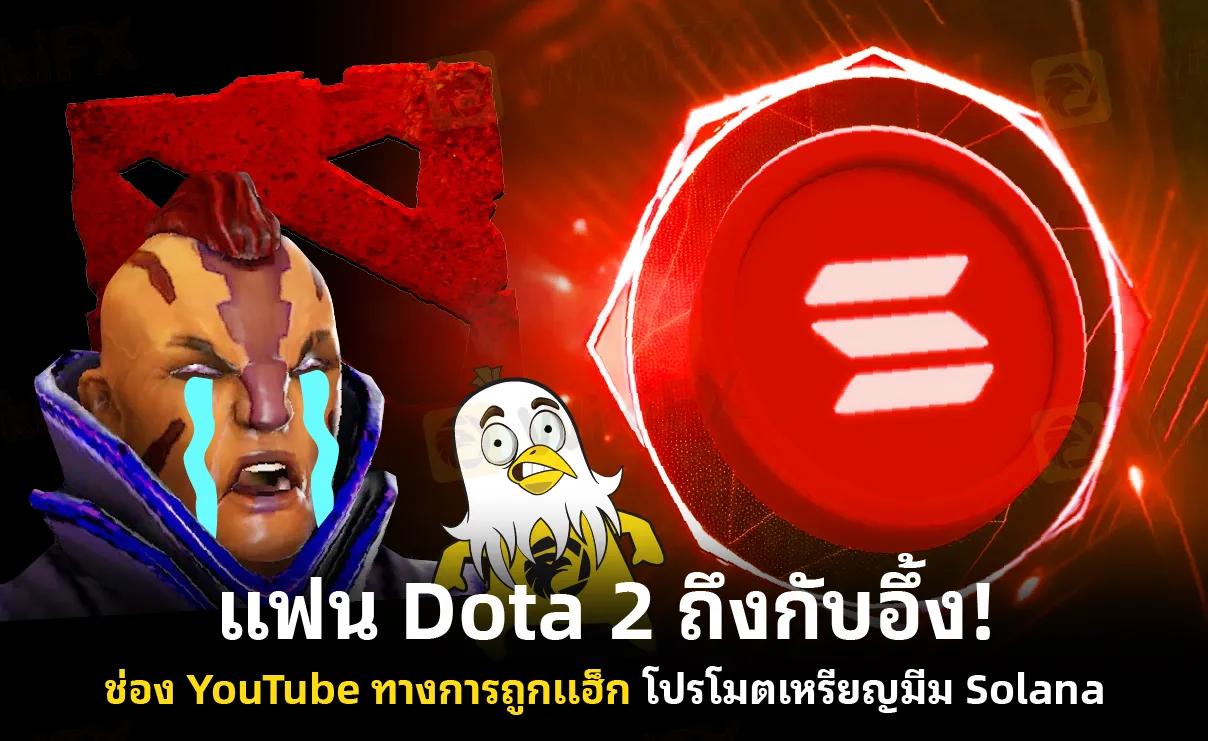 แอดเหยี่ยวมีข่าวช็อกวงการเกมมาเล่าให้ฟังกันหน่อยครับ — ล่าสุด ช่อง YouTube หลักของเกม Dota 2 เกม MOBA ระดับตำนานที่อยู่คู่สายเกมมามากกว่า 12 ปี ถูกแฮ็กโดยมิจฉาชีพเพื่อนำไป โปรโมตเหรียญมีมบนเครือข่าย Solana