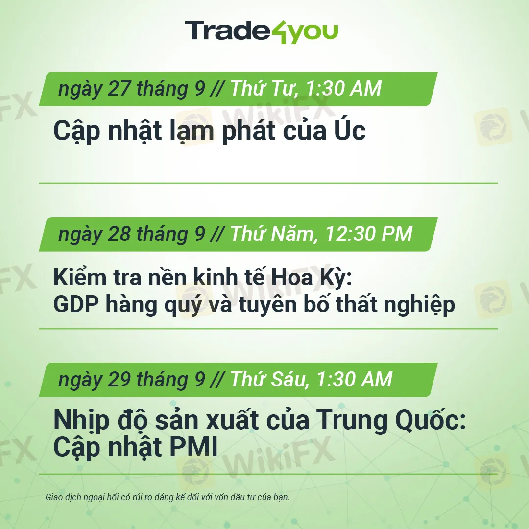 Lịch kinh tế cho tuần 26/09/2023 | Trade4you