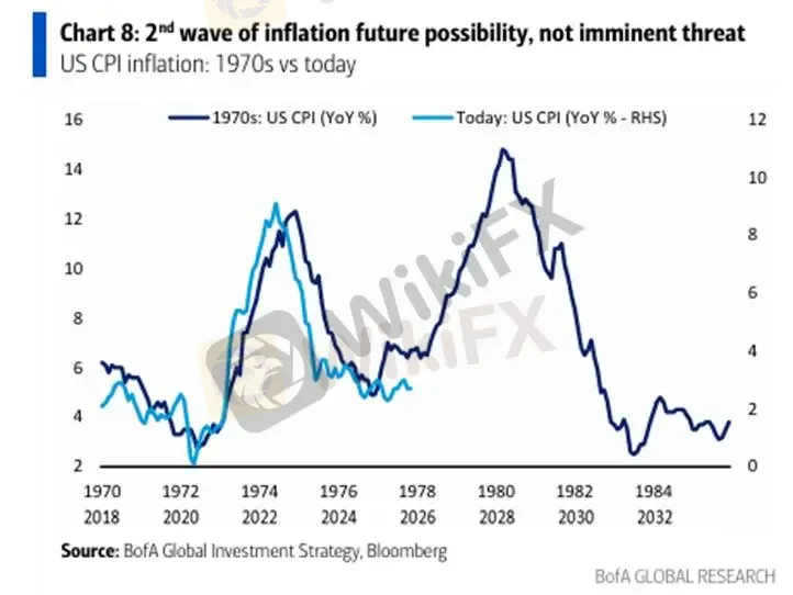 (Biểu đồ 2: So sánh xu hướng lạm phát thập niên 1970 và hiện tại; Nguồn: BofA)
