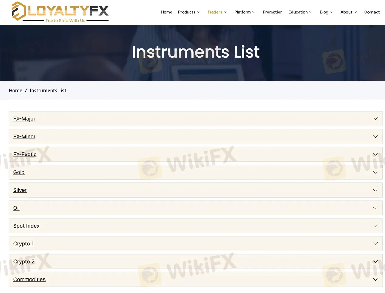 全面的, Loyalty Fx Markets提供范围广泛的市场工具,以满足具有不同偏好和风险偏好的交易者的需求。