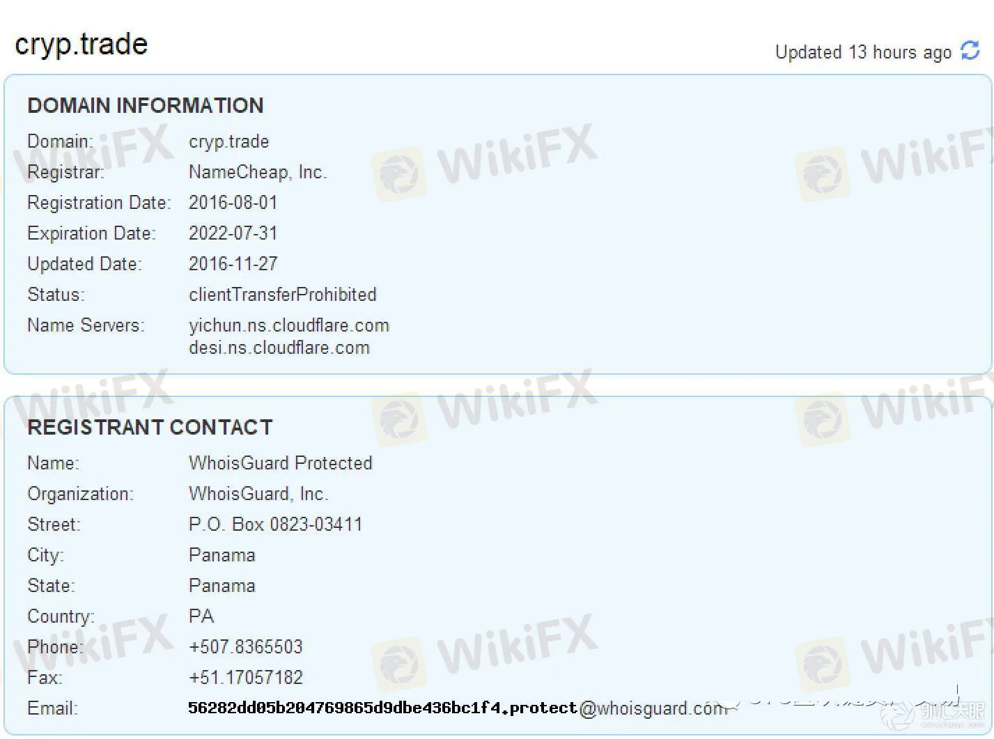 CTC区块链资产交易的网站:cryp.trade 为专属域名。所以很多朋友不懂怎么查询,或者直接查询不到结果。在这里“百纳国际”为大家直接查询,以下为查询结果,复制下面链接可以自寻查阅网站信息。