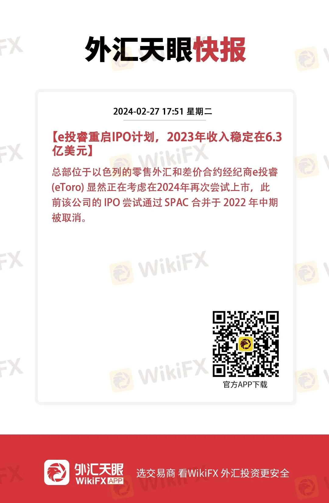 摘要:总部位于以色列的零售外汇和差价合约经纪商 e投睿(eToro) 显然正在考虑在 2024 年再次尝试上市,此前该公司的 IPO 尝试通过 SPAC 合并于 2022 年中期被取消。