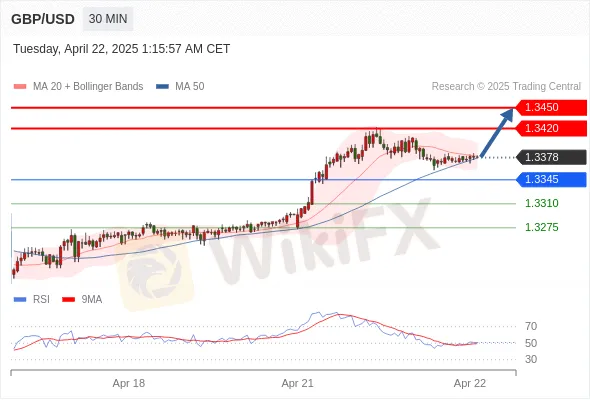 在 1.3345 之上,看涨,目标价位为 1.3420 ,然后为 1.3450。