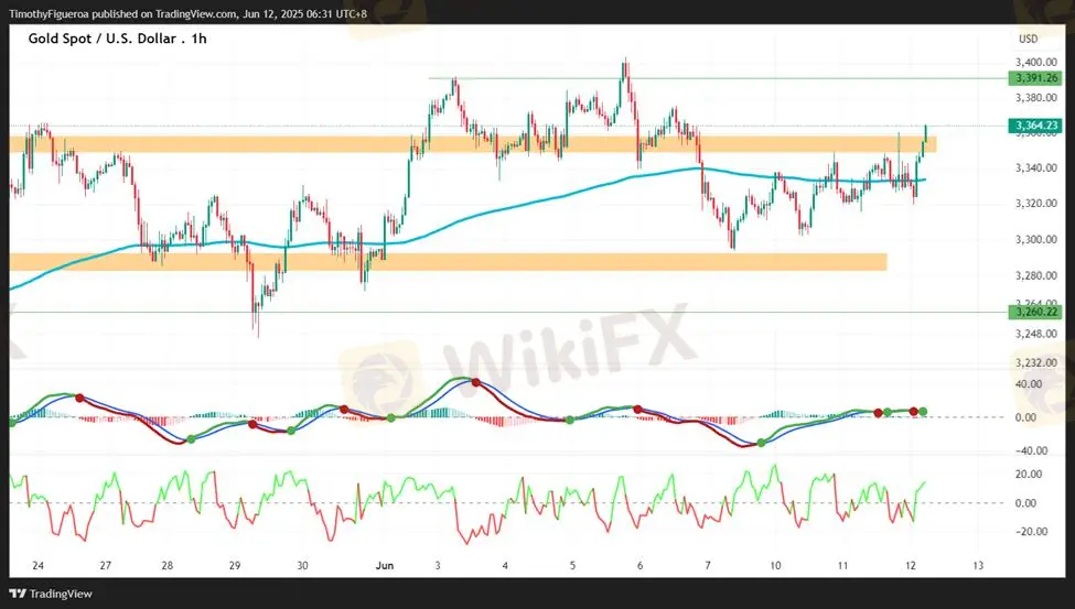 摘要:各位交易者好,今天是2025年6月12日(周四),以下是NAG Markets为您带来的每日市场评论。黄金昨日金价在盘整后上涨。亚洲盘开盘时,金价突破了盘整区间的上轨。我们有机会从中发现买盘动能的增强。美元走弱直接影响了金价的上涨。昨日公布的美国消费者物价指数(CPI)数据低于预期,导致美元下跌。然而,从技术面来看,MACD和RSI指标尚未显示出明显的看涨趋势。我们将拭目以待。白银银价在突破近期阻