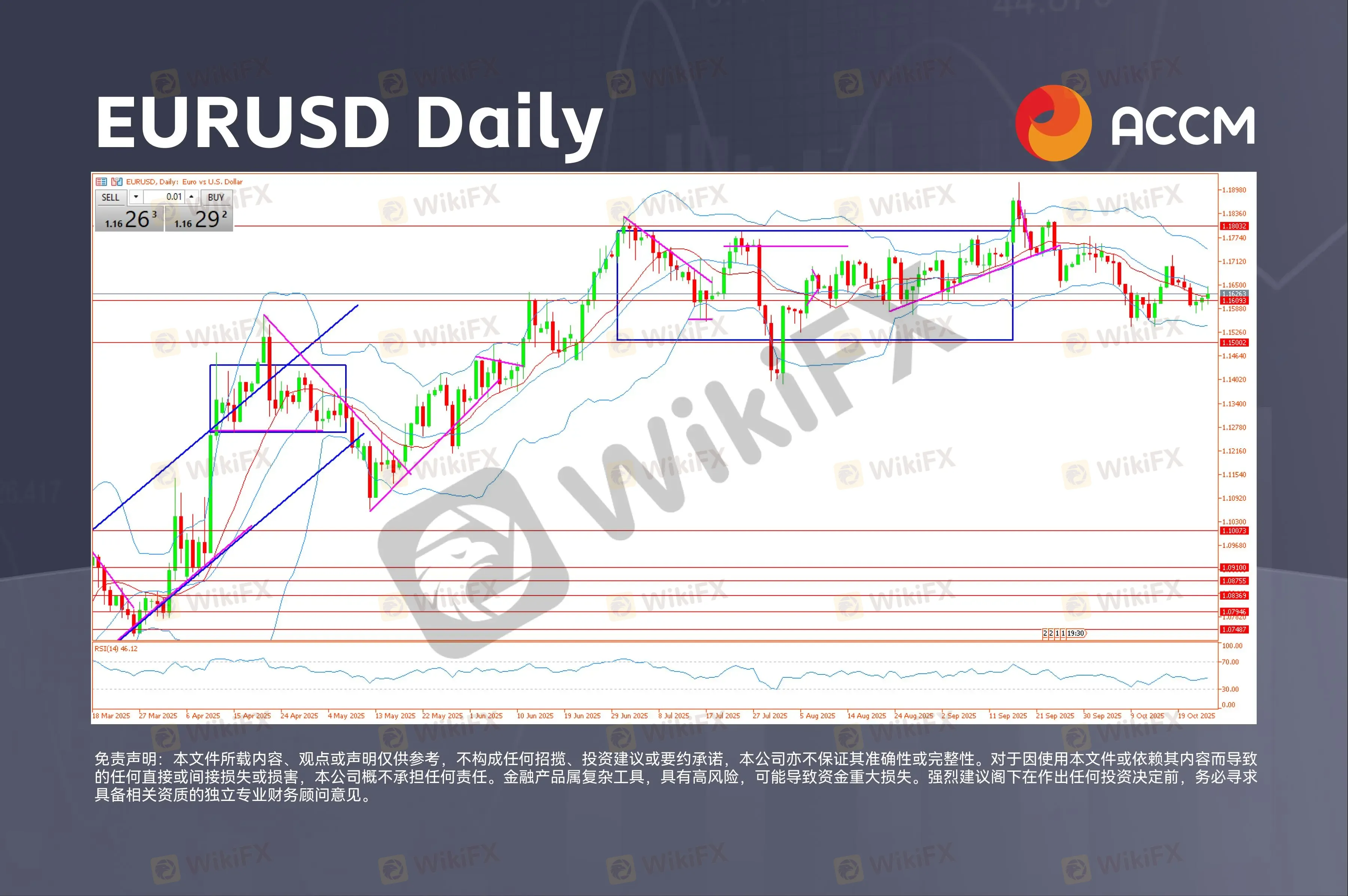 对于EUR/USD,其核心仍在于利差因素。欧元的走势更多取决于美国宏观数据的意外程度,而非自身经济数据。若美国通胀降温、美债收益率回落,欧元可能回升至1.17;但若市场重新定价美联储的鹰派政策,则可能再度下探1.1550,该位或成为11月走势的关键风向。