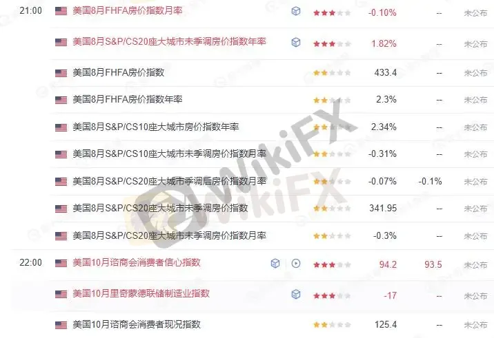 周二(10月28日)市场普遍预计,美联储将在本周继续降息25个基点,这旨在防止劳动力市场进一步放缓,且可能不是一系列降息的终点。尽管政府关门导致了大多数官方经济数据的发布延迟,包括失业率。弱于预期的通胀数据,包括上周报告的消费者价格指数(CPI)同比上涨3%,已经让人们对关税驱动的价格压力的担忧暂时搁置一旁。美联储在上月降息25个基点后,经由共识达成的会后声明中包含了对政策利率进行额外调整的措辞。美联储负责监管的副主席特别指出,该措辞预示着未来会进一步降息,而投资者预计美联储不会通过调整这一措辞来暗示可能暂停降息。当然,美联储主席鲍威尔不会在周四的会后新闻发布会上暗示12月的另一次降息已经是板上钉钉的事。因为变数太多。政府关门结束后,数据的恢复发布也可能意味着,美联储决策者们在现在到12月会议之间将获得三个月的就业数据,这可能会重塑他们对劳动力市场状况的看法。美元指数震荡至98.70;非美货币反弹,澳元兑美元反弹至0.6550,欧元兑美元来到至1.1650附近,离岸人民币到达7.10。现货黄金跌至3990美元附近,现货白银下行至46.80美元附近。原油徘徊至61.70美元附近。
