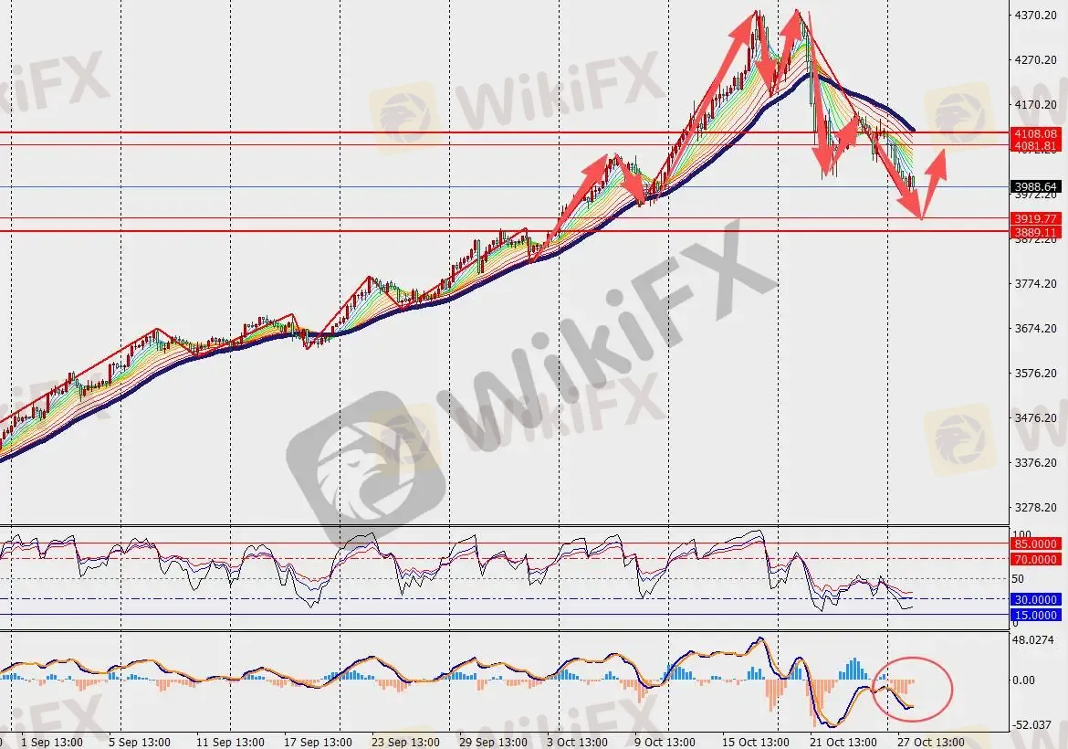 技术面:原油H4级别震荡回落,但依旧在48日多空分界线上方运行。另一方面,MACD双线和量能柱在零轴上方扩张。国际能源署预计,随着全球供应继续增加,明年石油市场将出现创纪录的过剩。