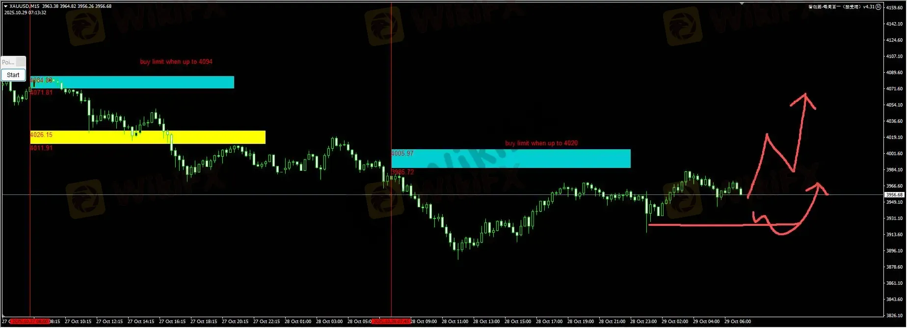 黄金:昨天我们关注蓝色区域的上破没有发生。日内我们继续保持对上破信号的关注,等待出现后回踩挂单buy limit。同时下方在3930附近也注意扫流动性的情况出现。详细位置请咨询插件。