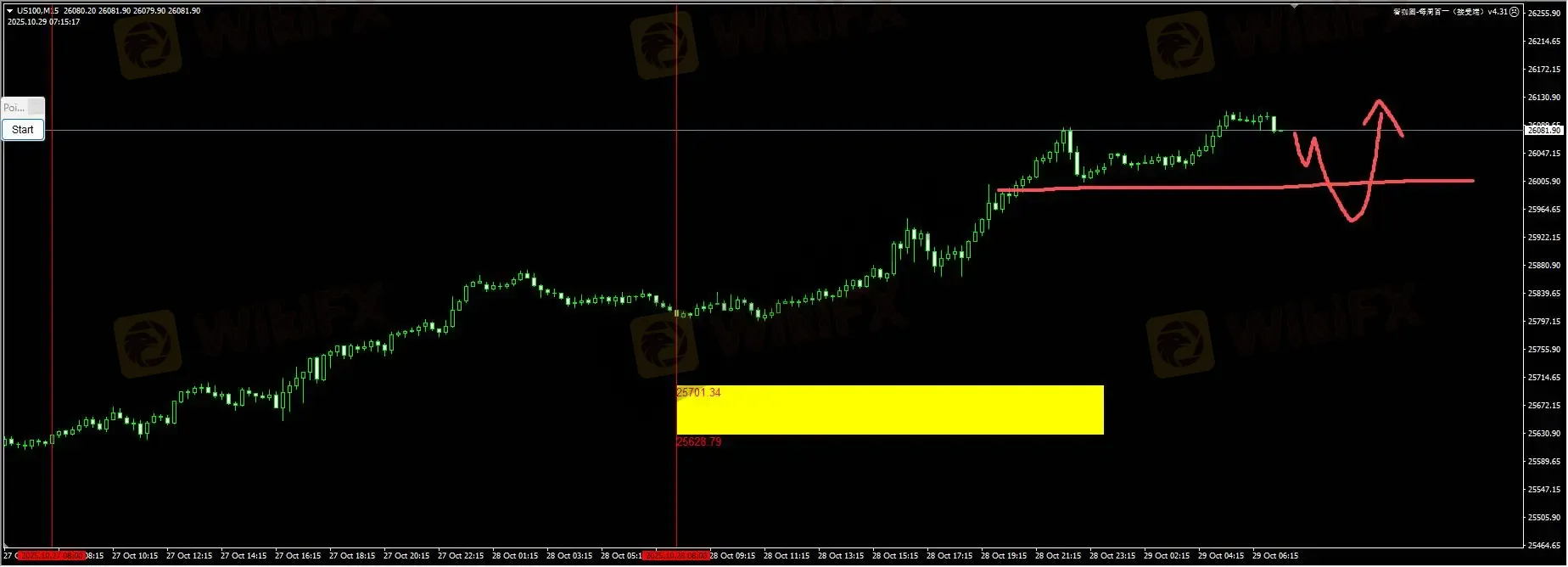 纳指:TACO交易的缓和,以及中美贸易协商可能出现进展,纳指继续刷新新高。我们继续关注低扫流动性之后的反弹信号;对于追高需要谨慎,如果参与盈亏比优先1:1减仓。详细位置请咨询插件。