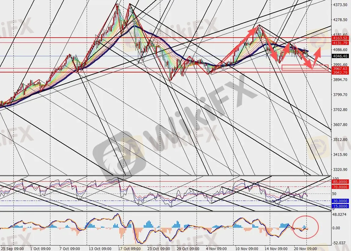 黄金H4级别震荡徘徊,MACD双线和量能柱在零轴附近逐步收敛。央行购金以及投资需求增长仍将助推贵金属价格重心继续上抬,震荡调整或将延续,波动区间可能进一步缩窄,多头动能随时准备爆发。