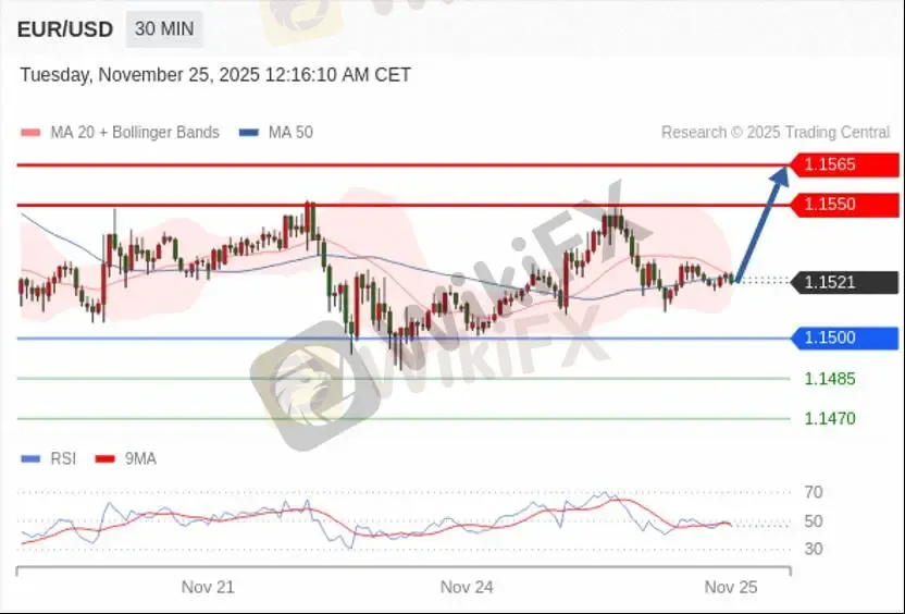 交易策略: 在 1.1500 之上,看涨,目标价位为 1.1550 ,然后为 1.1565。