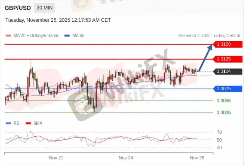 交易策略: 在 1.3075 之上,看涨,目标价位为 1.3125 ,然后为 1.3150。