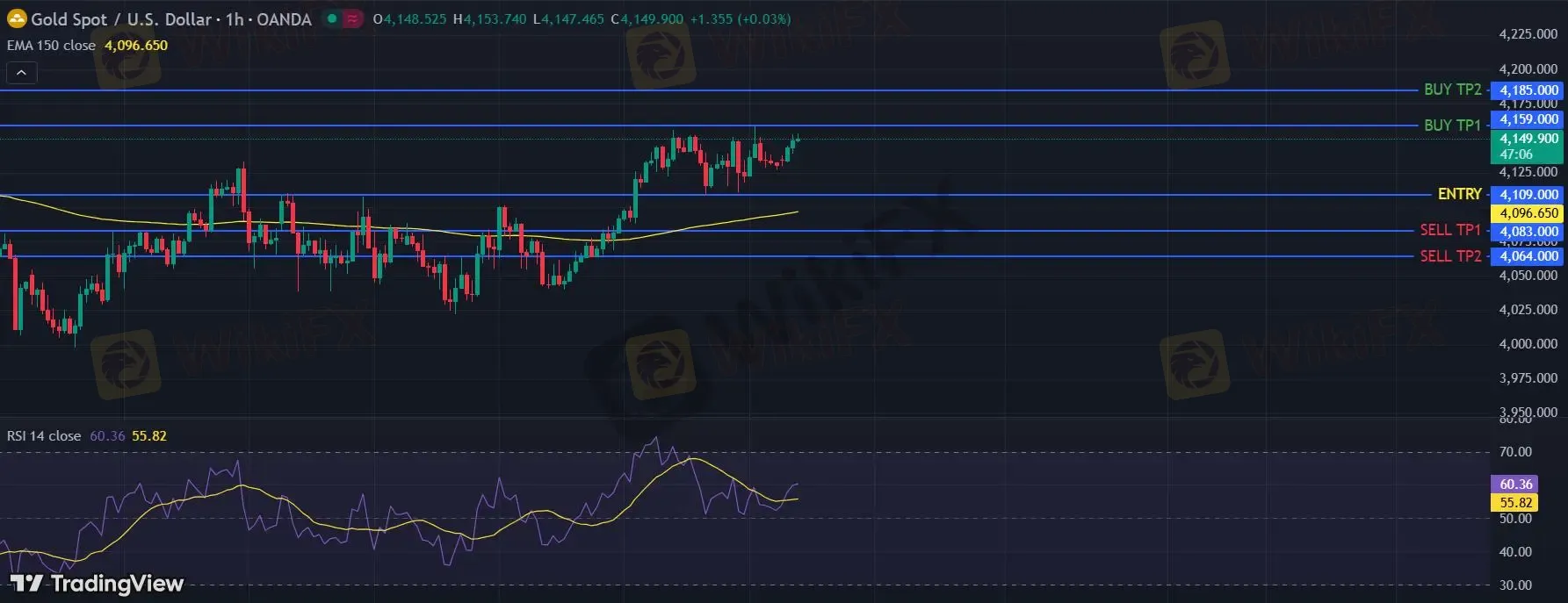 在 4109 下,看空,目标价位定在 4083 ,然后为 4064。