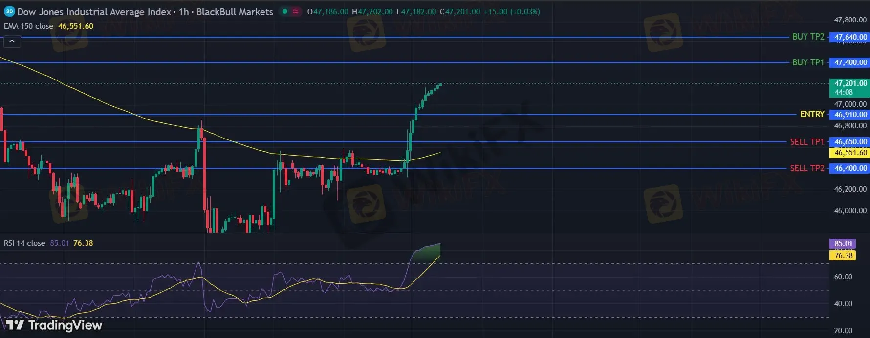 在 46910 之上,看涨,目标价位为 47400 ,然后为 47640 。