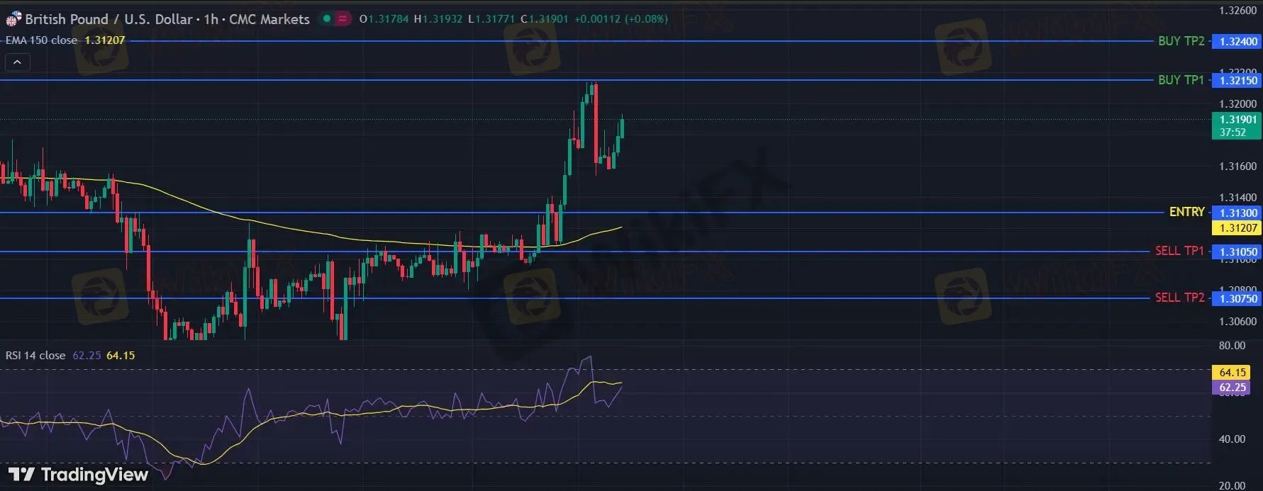 英镑/美元 当日内: 在1.3130之上,看涨。
