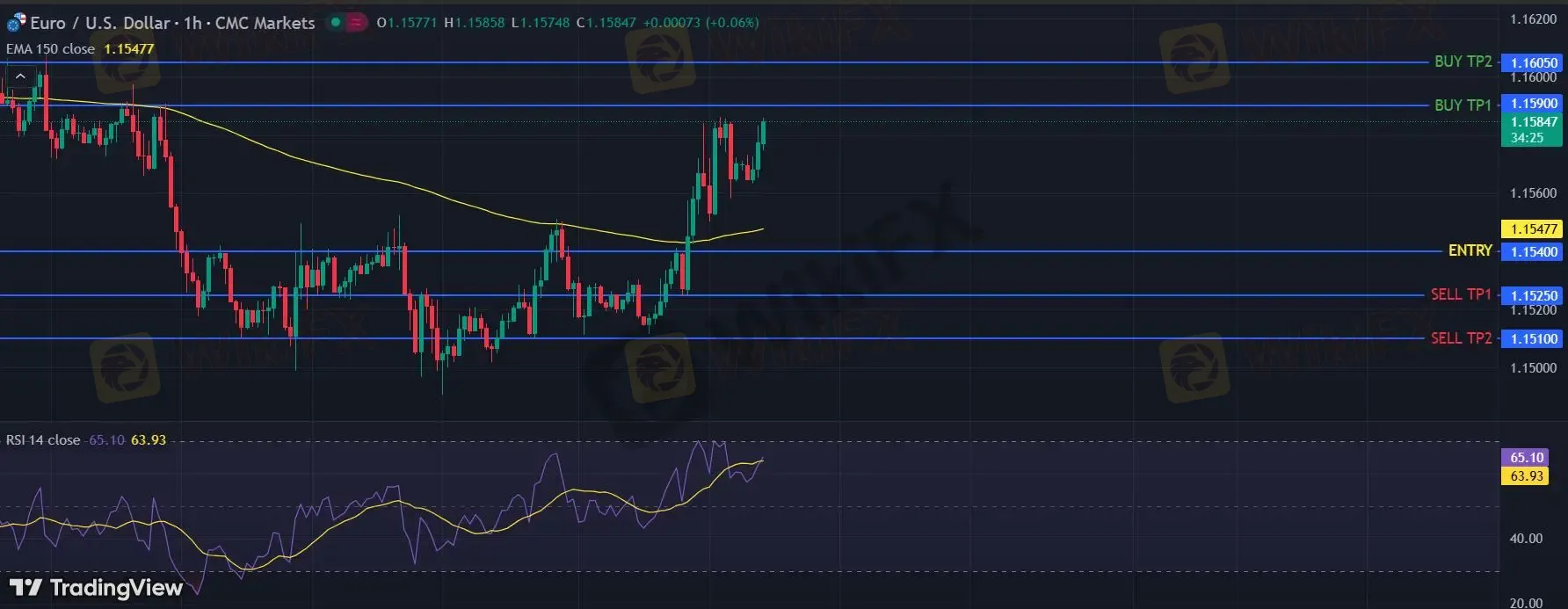 在 1.1540 下,看空,目标价位定在 1.1525 ,然后为 1.1510。