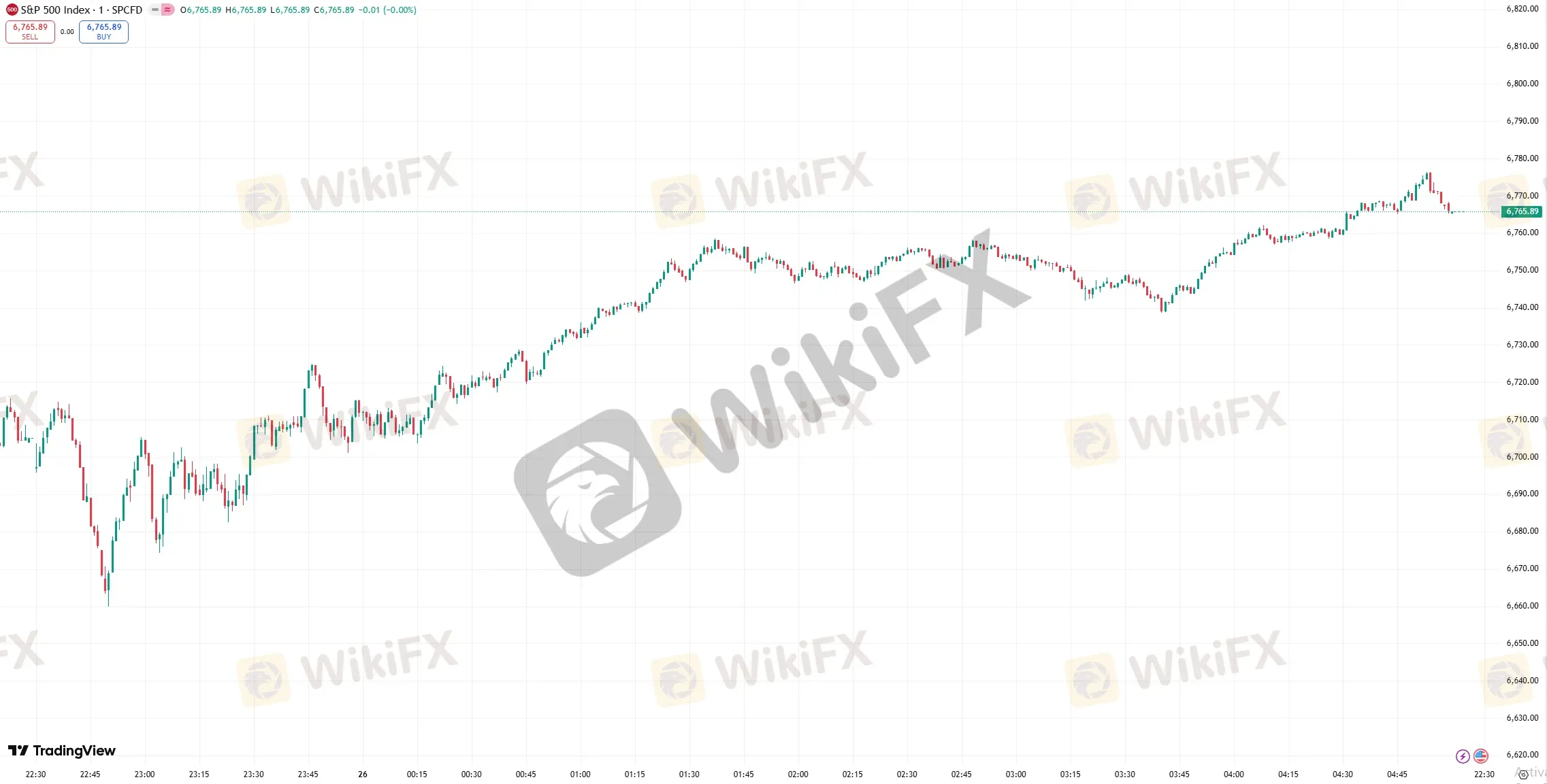 标普 500 指数涨 60.76 点,涨幅为 0.91%,报 6765.88 点