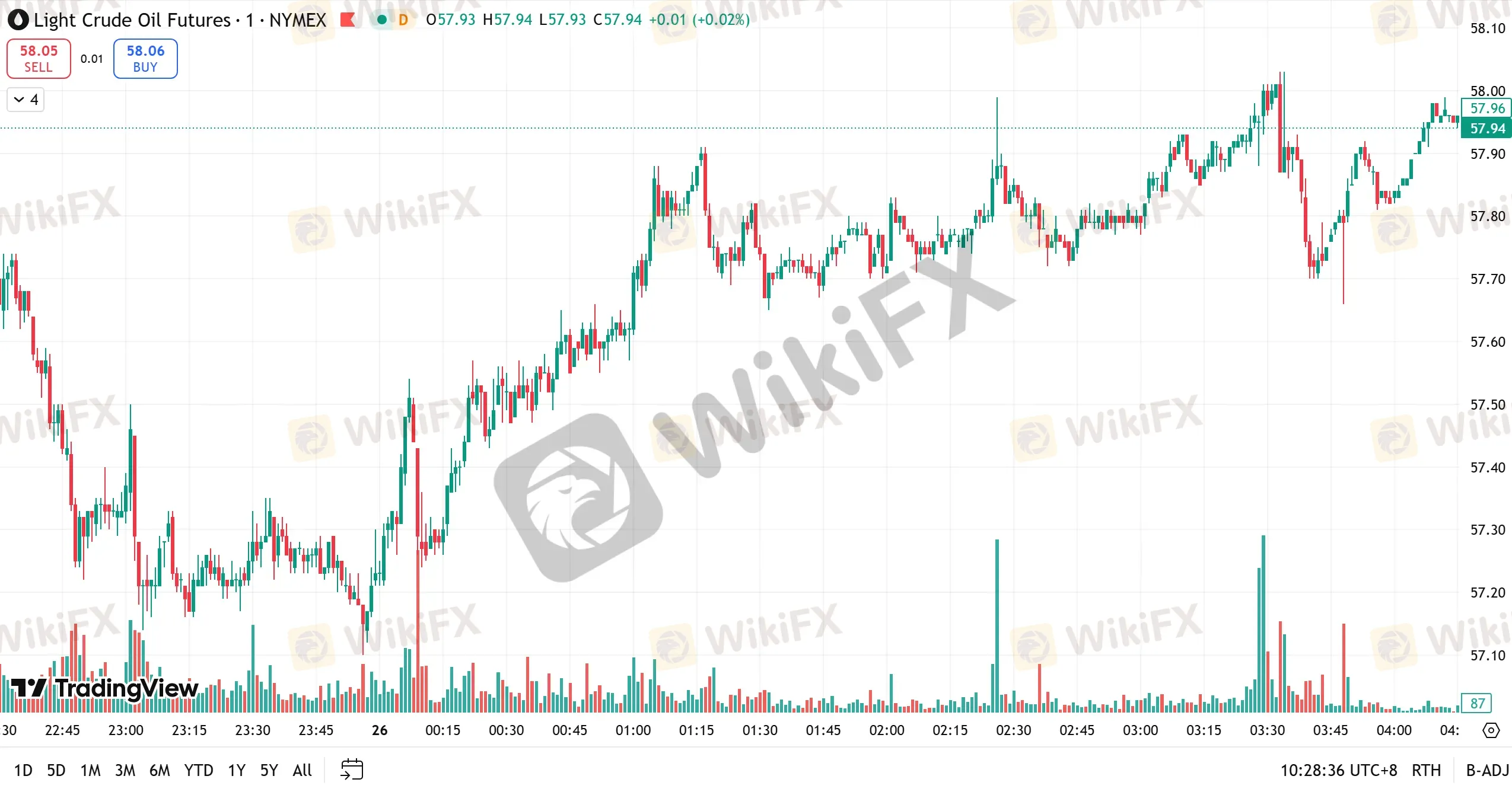 技术面上,原油从日线图级别看,从局部级别看,当下震荡节奏呈次要震荡,K 线连收3根阴线,向前期低点56附近进行测试。MACD 指标在零轴下方附近形成死叉,空头动能有逐渐增加迹象。56 强支撑位被跌破,则原油走势中期将进入下行节奏。原油短线(1H)走势在 57.40 获得支撑,反弹向上。均线系统拐头向上排列,短线客观趋势方向向上。MACD 指标快慢线上穿零轴与多头动能柱子重合,预示多头动能当下表现充盈。早盘走势仍处于主趋势向上节奏中,预计日内窄幅调整后,仍存在一波上行空间。