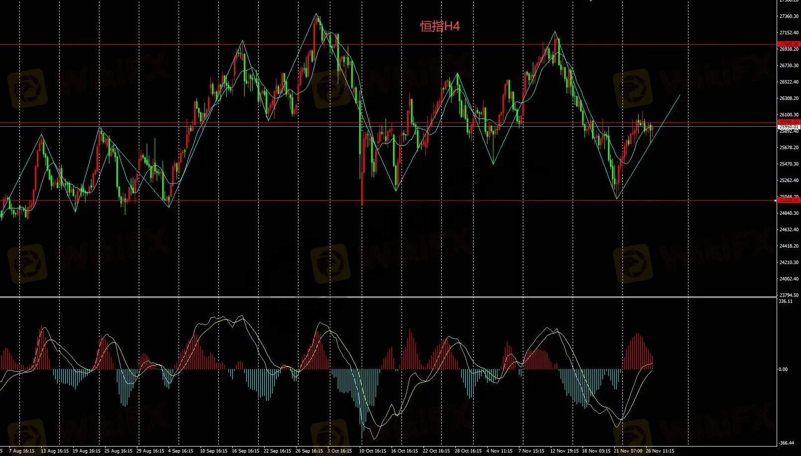 恒指H4多头需等待价格上破26000,可考虑,否则不考虑空头。