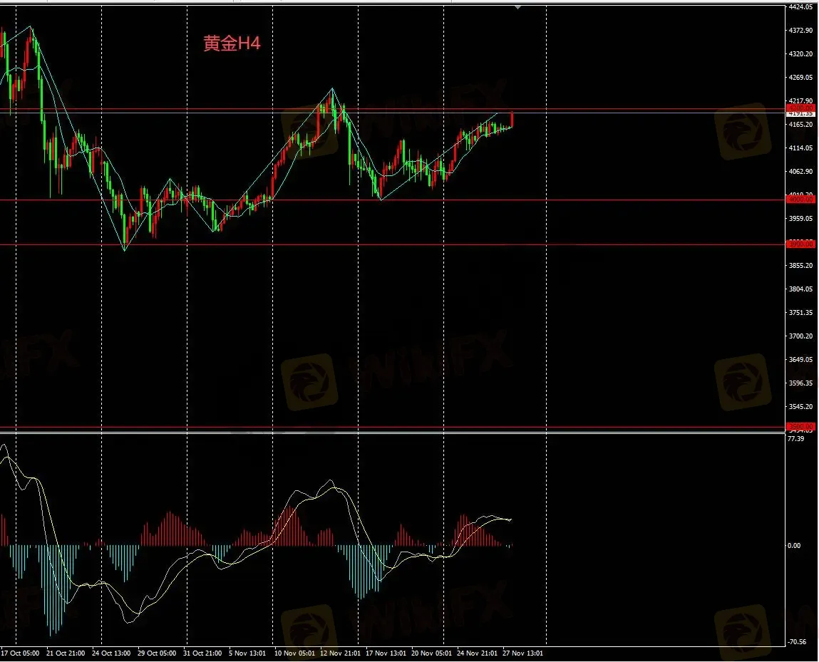H4图表金价若上破4200,将再次开启上涨态势,前期历史高点亦无法压制此次上涨走势。