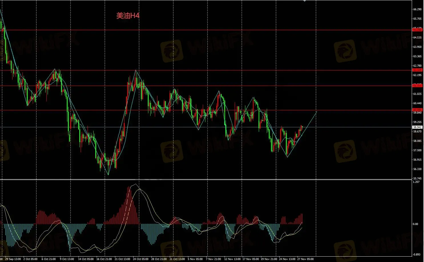 美油价格持续维持在60关口下方震荡走低,震荡走低态势。