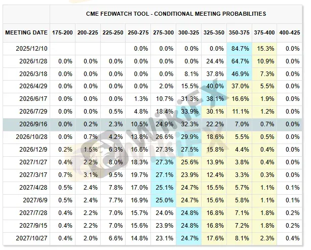 美联储 12 月降息 25 个基点概率升至 84.7%,市场预期再度强化