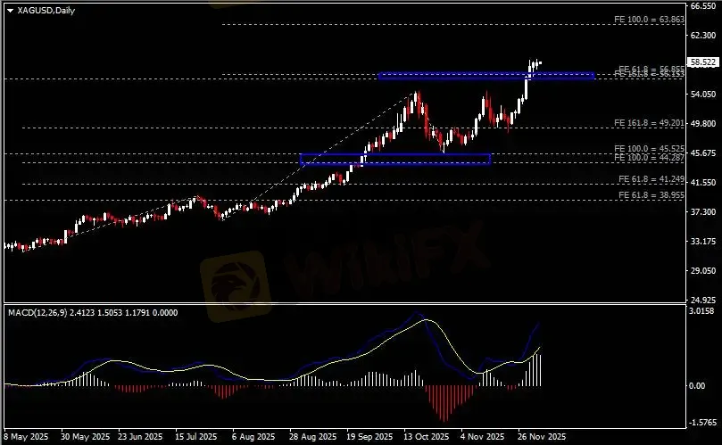 在贵金属市场,现货黄金承压于近6周以来高位,收于4202美元/盎司;现货白银续创历史新高58.95美元,随后收于58.44美元/盎司。