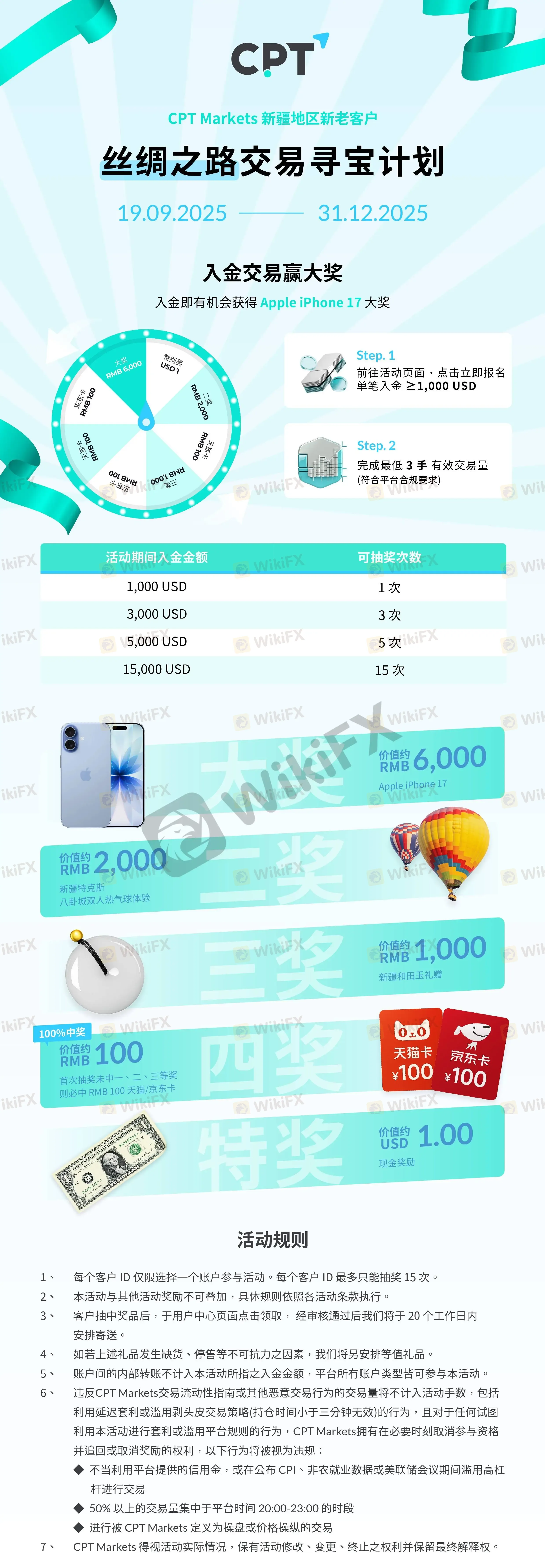 风险警示:金融商品及杠杆具有一定高风险,可能会导致您的资金亏损。在此您需评估自身的财务是否为个人承受能力范围,且确保您完全了解其所涉之风险。在交易前,请您了解各项投资经验水平,必要时可寻求独立财务之建议。如有任何相关风险交易办法,请详阅CPT Markets 官方风险披露指南。