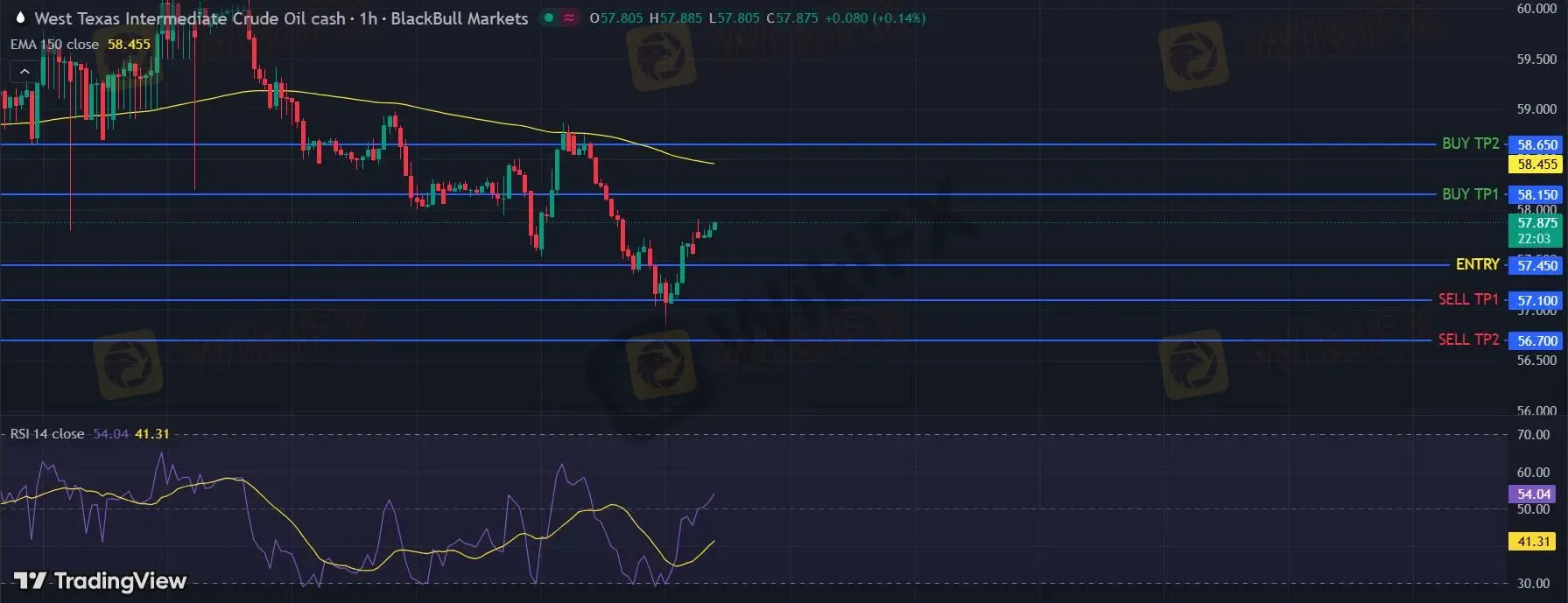 在 57.45 之上,看涨,目标价位为 58.15 ,然后为 58.65 。