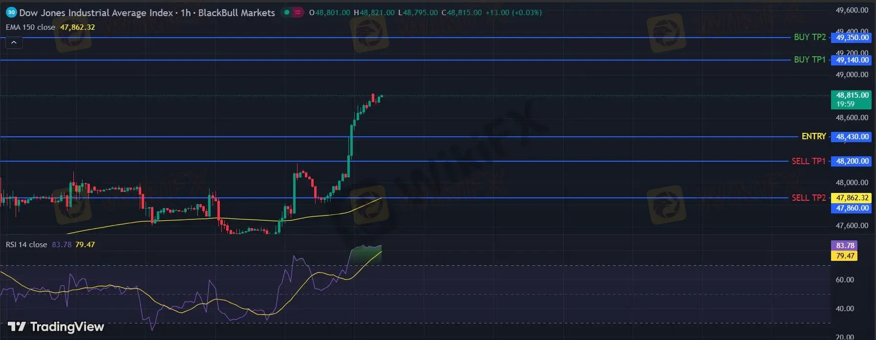 在 48430 下,看空,目标价位定在 48200 ,然后为 47860。
