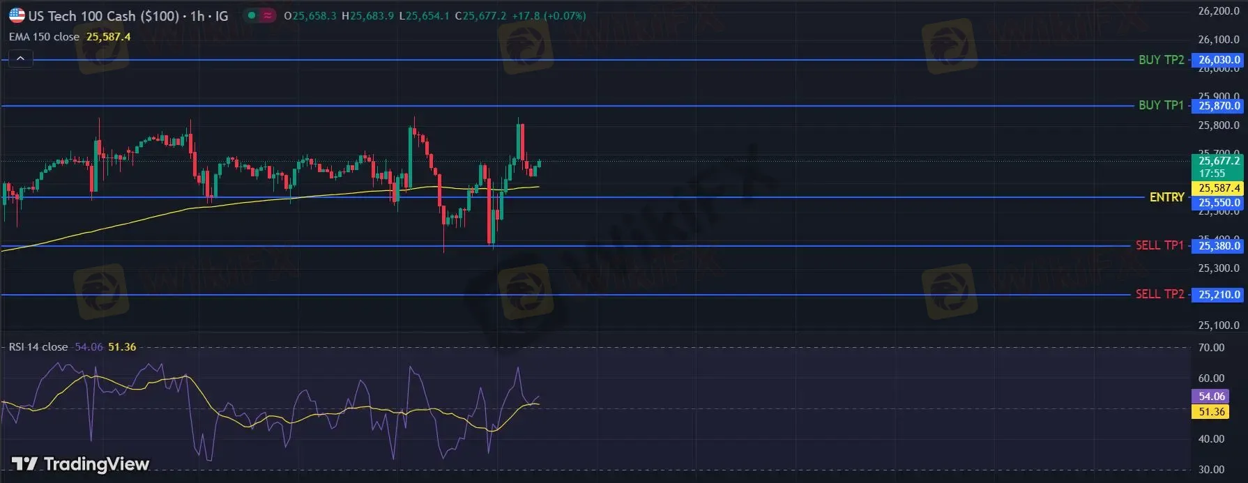 在 25550 之上,看涨,目标价位为 25870 ,然后为 26030 。
