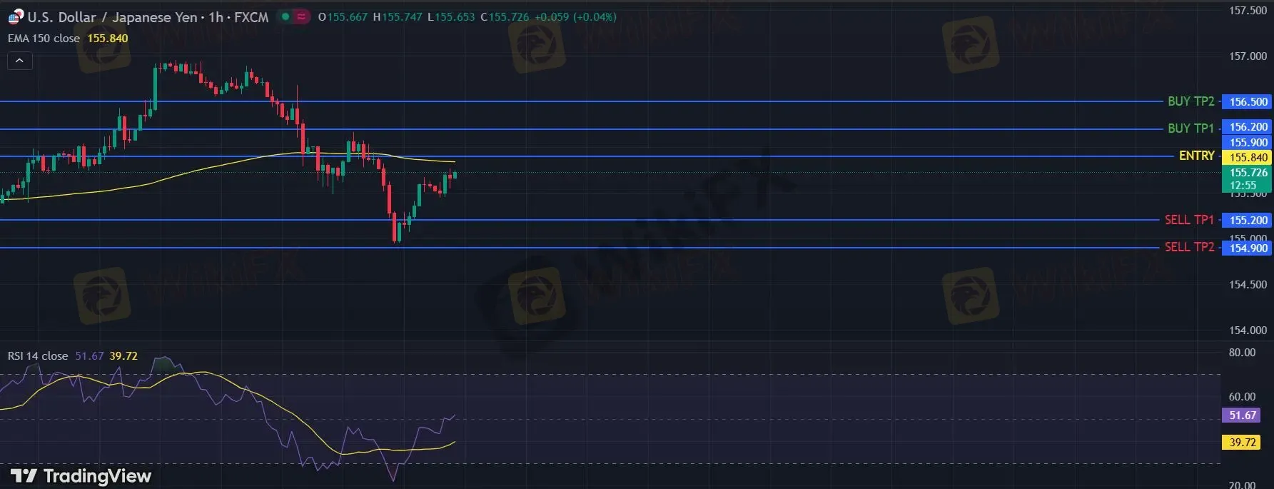 在 155.90 上,看涨,目标价位定在 156.20 ,然后为 156.50。