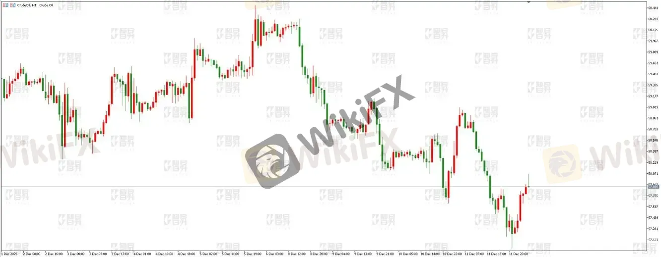 原油日线收带长上影的小阴线,均线空头发散。1小时周期下跌结构有完成的可能,短线可关注上方58.60美元一线的压力。
