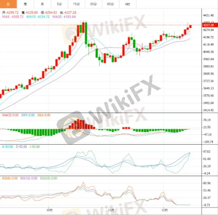 周一亚洲交易时段,国际金价(XAU/USD)延续强势,吸引逢低买盘并上探至 4326 美元附近,创下 10 月 21 日以来新高。市场整体情绪偏多,这主要受到美联储货币政策转向预期以及全球市场风险偏好下降的双重影响,推动金价在近期呈现出震荡上扬的格局。