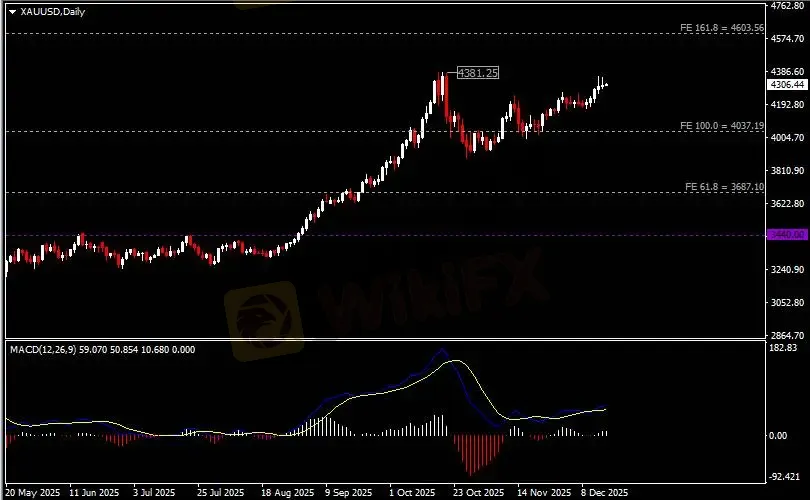 日线图显示金价涨势暂缓,当前仍收于4040支撑。从MACD来看,快慢线向上运行,白色动能柱温和增量。金价走势基本和动能柱的变化一致。