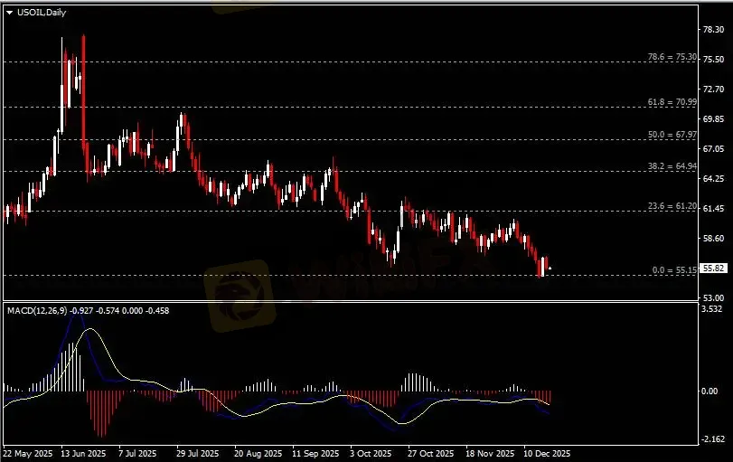 日线图显示油价震荡下挫,当前仍收于55关键支撑。从MACD来看,快慢线向下运行,红色动能柱温和增量。油价走势基本和动能柱的变化一致。