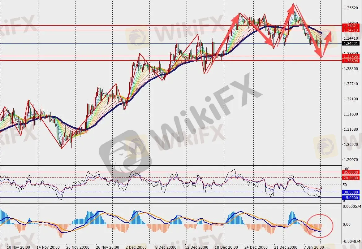 第一阻力位:1.3480 第一支撑位:1.3370