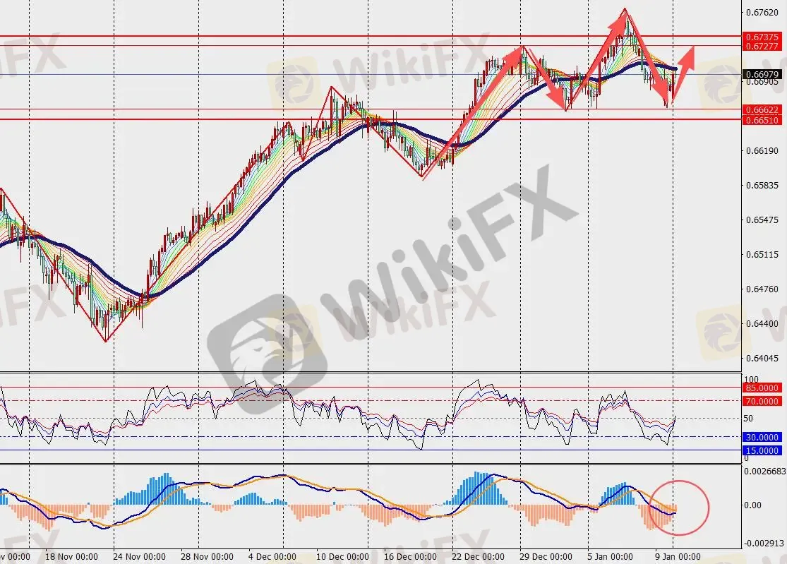 第一阻力位:0.6740 第一支撑位:0.6650
