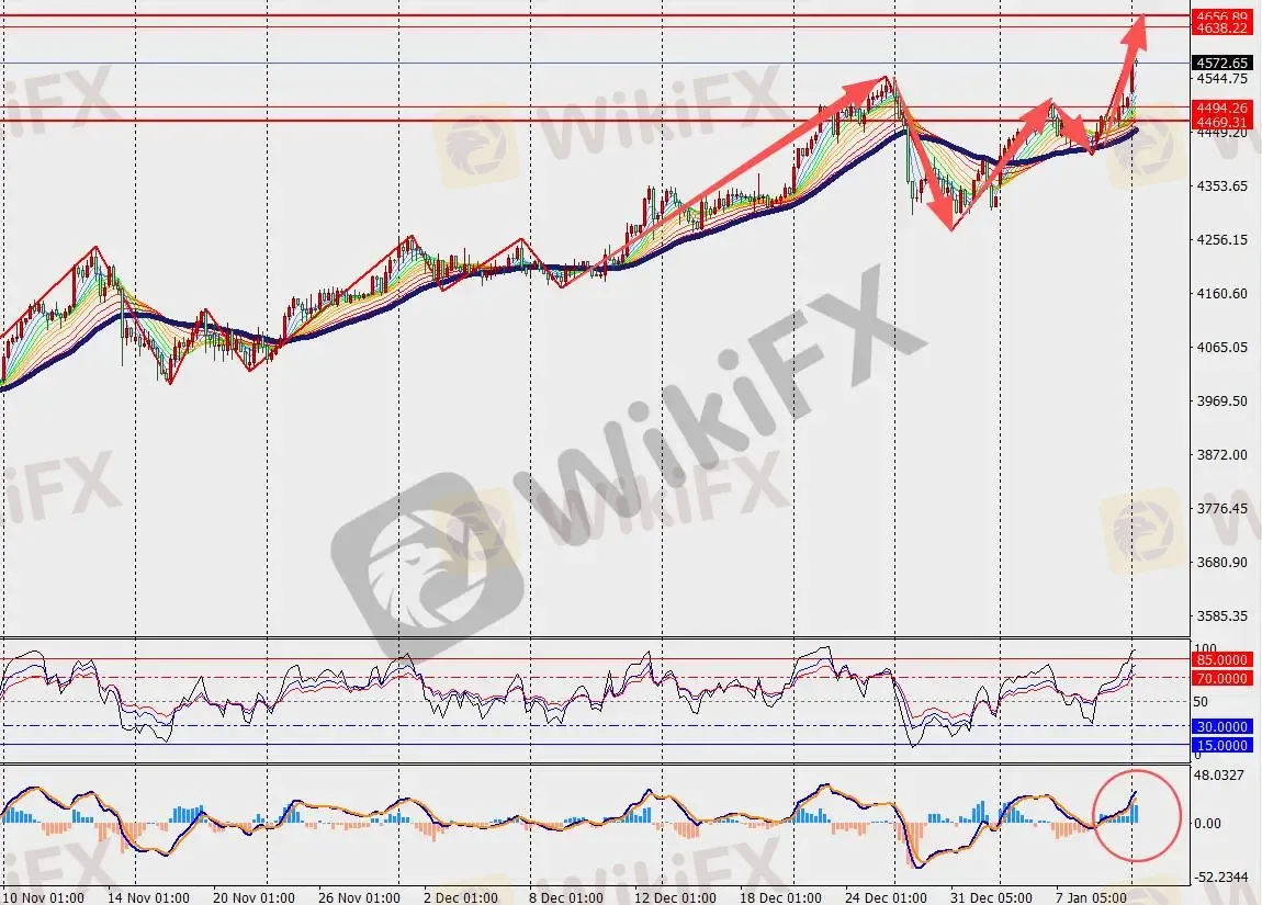 第二阻力位:4607.00 第二支撑位:4538.00