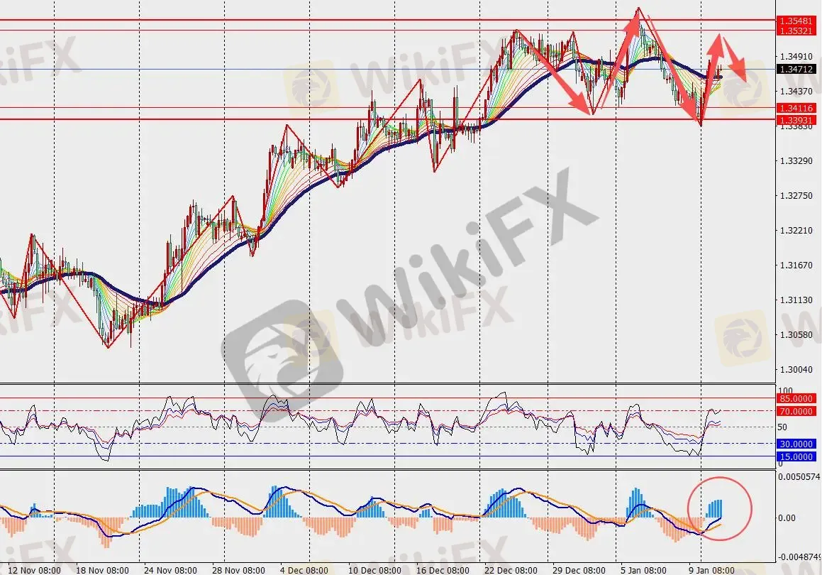 第一阻力位:1.3530 第一支撑位:1.3420